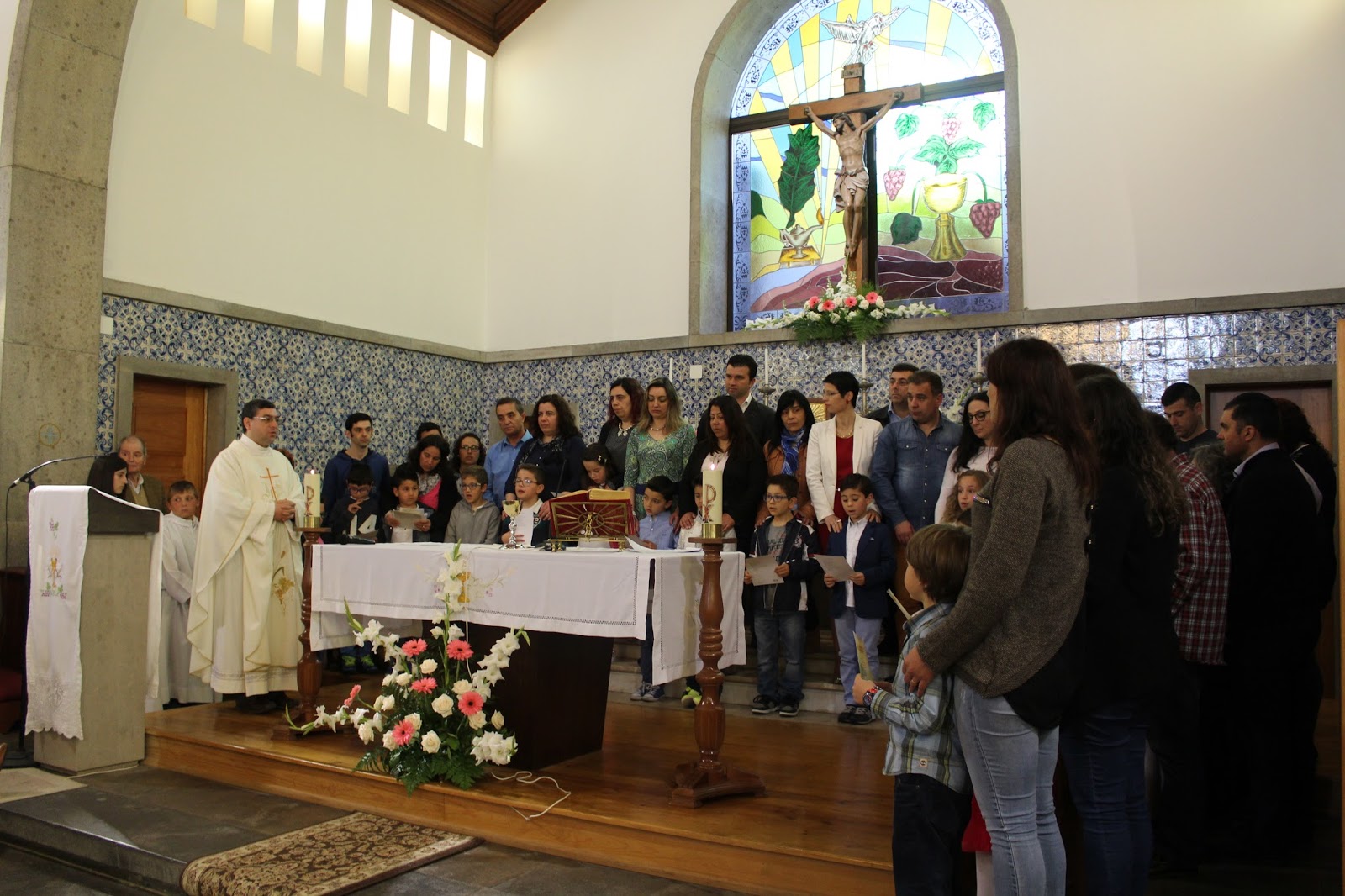 No passado dia 17 de abril, 32 crianças dos grupos do 3º ano da catequese da Calvaria e de São Jorge, participaram plenamente na Eucaristia pela primeira vez, comungando “Jesus escondido”, como Francisco, o Pastorinho de Fátima gostava de dizer de Jesus na hóstia consagrada.